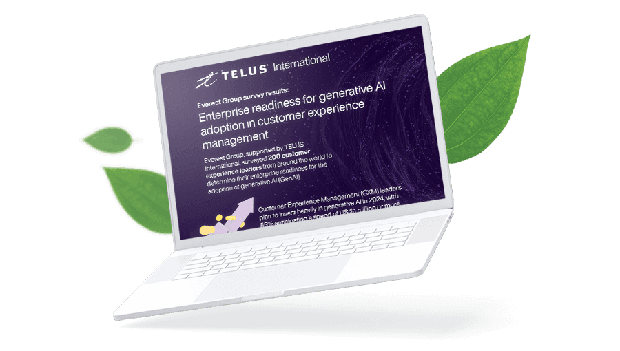 Everest Group, supported by TELUS Digital, surveyed 200 customer experience leaders from around the world to determine their enterprise readiness for the adoption of generative AI (GenAI).