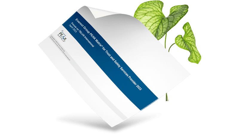 Download this report to uncover why analysts and buyers have named TELUS Digital (formerly TELUS International) a 'Major Contender' in Everest Group's Trust and Safety PEAK Matrix® assessment.